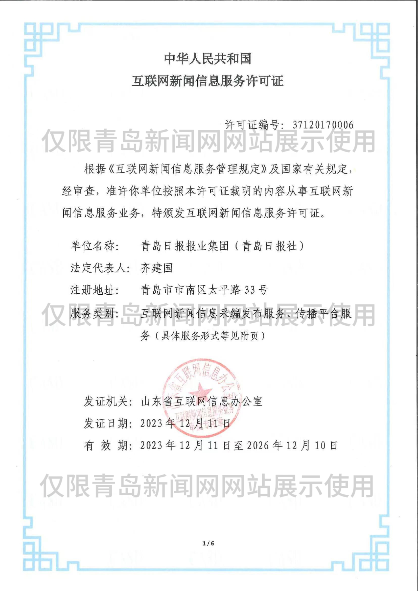 為確保在國際互聯(lián)網(wǎng)上所發(fā)布青島新聞信息的正確政治方向,便于網(wǎng)上新聞發(fā)布的把關(guān),青島新聞網(wǎng)絡(luò)傳播有限公司是青島日報報業(yè)集團各報(刊)及其網(wǎng)絡(luò)版在國際互聯(lián)網(wǎng)上進(jìn)行信息交換、交流的代表和制作、發(fā)布人,全權(quán)負(fù)責(zé)青島日報報業(yè)集團各報(刊)及其網(wǎng)絡(luò)版的對外信息交換、交流業(yè)務(wù)。