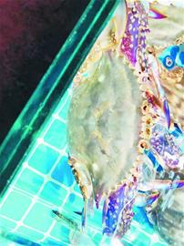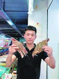 趙曰陽(yáng)展示海捕蟹(左)和養(yǎng)殖蟹