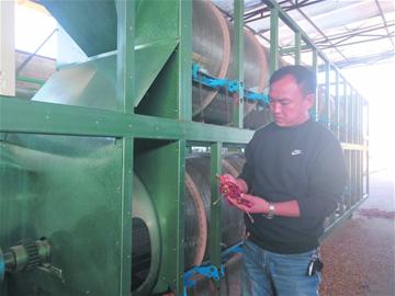 李志敏正在安裝辣椒剪把機。馬丙政攝