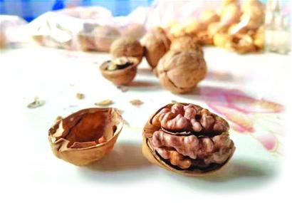 高清貴拿出核桃新品種,熱情邀請記者品嘗。記者隨手拿起一枚核桃,放在手里輕輕一捏,飽滿的核桃仁便暴露出來,而且核桃殼并沒有完全破碎。記者注意到,這幾個核桃新品種個頭比普通核桃要大,殼的厚度僅僅與普通名片差不多。高清貴說,他培育的三個品種,分別起名為“清貴1號”、“清貴2號”、“清貴3號”。吃核桃除了養(yǎng)生之外,最主要就是吃這個香味,“清貴1號”吃起來比較方便,兩個核桃握在手里,稍稍用勁一捏,核桃皮就碎了。不像硬殼核桃一樣,還得找專門的工具,而且出仁率高,味道純正,口齒留香,令人回味悠長,缺點就是產(chǎn)量上不去。 “清貴3號”抗病性較低,管理難度大。