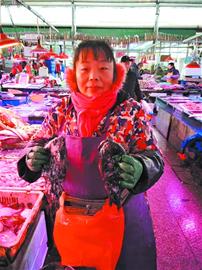 在鎮(zhèn)江北路農(nóng)貿(mào)市場,記者看到很多攤位都有墨魚出售。來自滕州的業(yè)主蔣繼玉在市場賣海鮮多年,什么季節(jié)上什么貨她很清楚。蔣繼玉告訴記者,這段時間碰到墨魚的大流,價格比以往便宜不少。12月7日上午九時,蔣繼玉剛從小港碼頭趕回市場。星期六是市場最為繁忙的一天,很多老人都會采購海鮮,等待孩子們回家聚餐。這天,蔣繼玉比往常多進(jìn)了上百斤的海鮮,僅僅墨魚就進(jìn)了200多斤。 蔣繼玉介紹,這次趕上了墨魚汛期,所以這次碼頭捕撈上來的墨魚非常多,價格也便宜。記者看到,幾個塑料筐里都盛著墨魚,上面還有碎冰。蔣繼玉按照墨魚的大小分別擺放,一斤左右一只的墨魚28元一斤,再小一點的25元一斤。記者了解到,在碼頭,成筐買大小不挑每斤10元。但是,墨魚大小不一,小墨魚到傍晚,賠本也要處理了。