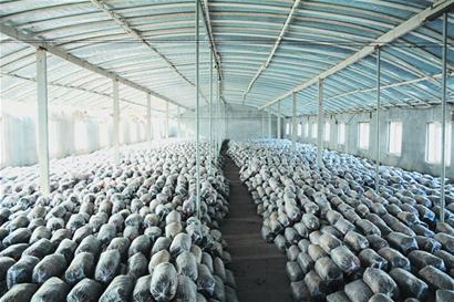 因?yàn)殪`芝種植技術(shù)要求較高,靈芝價(jià)格也高,銷量少,起初只能少量種植。孫慶玲家制種及種植的食用菌主要是容易管理的平菇。隨著生活水平的提高,人們對(duì)靈芝的需求越來越大,孫慶玲種植靈芝的規(guī)模也越做越大。孫慶玲說:“靈芝對(duì)人很有好處。靈芝孢子粉是靈芝的精華,是靈芝生長(zhǎng)成熟后自動(dòng)彈射出來的,我們利用引風(fēng)機(jī)收集起來。靈芝孢子粉能治療很多疾病,理療價(jià)值較大?!?在孫慶玲的食用菌基地,14個(gè)食用菌大棚建設(shè)整齊劃一,周圍有樹木遮陰,采光通風(fēng)性能良好。每個(gè)大棚長(zhǎng)40米,寬18米,高4.5米,上面鋪設(shè)蒲草遮陽(yáng)網(wǎng)。走進(jìn)大棚,地上擺放著一排排白色的像是“小枕頭”樣的東西,兩頭白色中間黑褐色,據(jù)孫慶玲介紹,這是靈芝發(fā)酵的培養(yǎng)料。種植靈芝主要在春夏季節(jié),一年能收獲四茬。