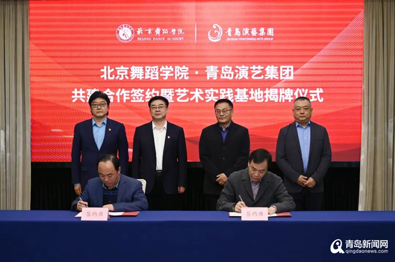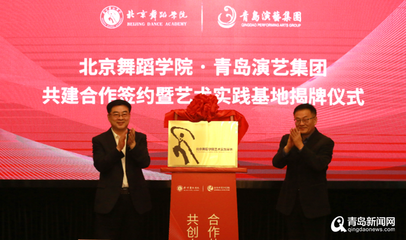 北京舞蹈學(xué)院黨委書記巴圖,青島演藝集團(tuán)黨委書記、董事長(zhǎng)、總經(jīng)理姜乃鵬為“北舞青島藝術(shù)實(shí)踐基地”進(jìn)行了揭牌。北京舞蹈學(xué)院藝術(shù)實(shí)踐辦公室主任張海君,青島市歌舞劇院黨總支書記、董事長(zhǎng)白潔代表雙方進(jìn)行現(xiàn)場(chǎng)簽約。