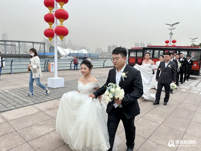 8對新人在青島復(fù)古鐺鐺車中一起巡游青島最美景色,向這座承載著無數(shù)建筑人青春的城市表達(dá)最深沉的敬意,也讓這座城市刻印下人生中最美好的回憶。潔白的婚紗、甜蜜的笑靨使整個車隊(duì)成為歡樂的海洋,歡笑聲、快門聲交織匯聚,譜寫著愛的進(jìn)行曲,有海有山有愛與自由,有你與溫柔,偶遇巡游的路人們也紛紛駐足揮手,為新人們送上一份真摯的祝福。