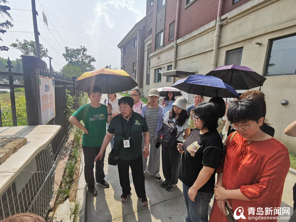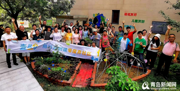 與會代表觀摩城陽街道大北曲后社區(qū)垃圾分類投放。