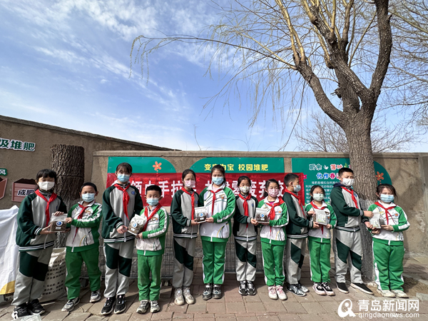 城陽區(qū)育才小學(xué)與惜福鎮(zhèn)小學(xué)“紅領(lǐng)巾手拉手”開展“零廢棄校園”。