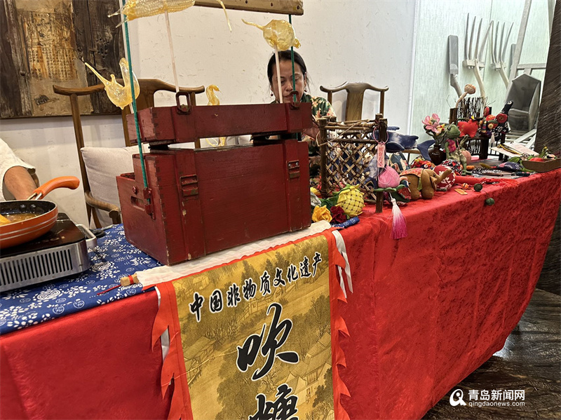 賓客紛至沓來、游人絡(luò)繹不絕地走進喬記漁莊,現(xiàn)場民間藝人展示著青島當(dāng)?shù)氐拿袼坠に?,將?jié)日的氛圍傳遞給每一位來往食客,共同感受青島文化的魅力。