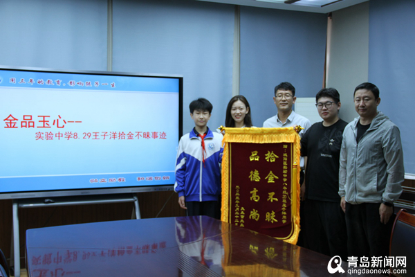 青島新聞網9月26日訊(記者 任俊峰)9月25日,青島市城陽區(qū)實驗中學明德樓二樓會議室召開一場特別的表彰會,失主曹先生將繡有“拾金不昧,品德高尚”的錦旗送到城陽區(qū)實驗中學八年級二十九班王子洋同學手中,對他拾金不昧的暖心善舉以示感謝。