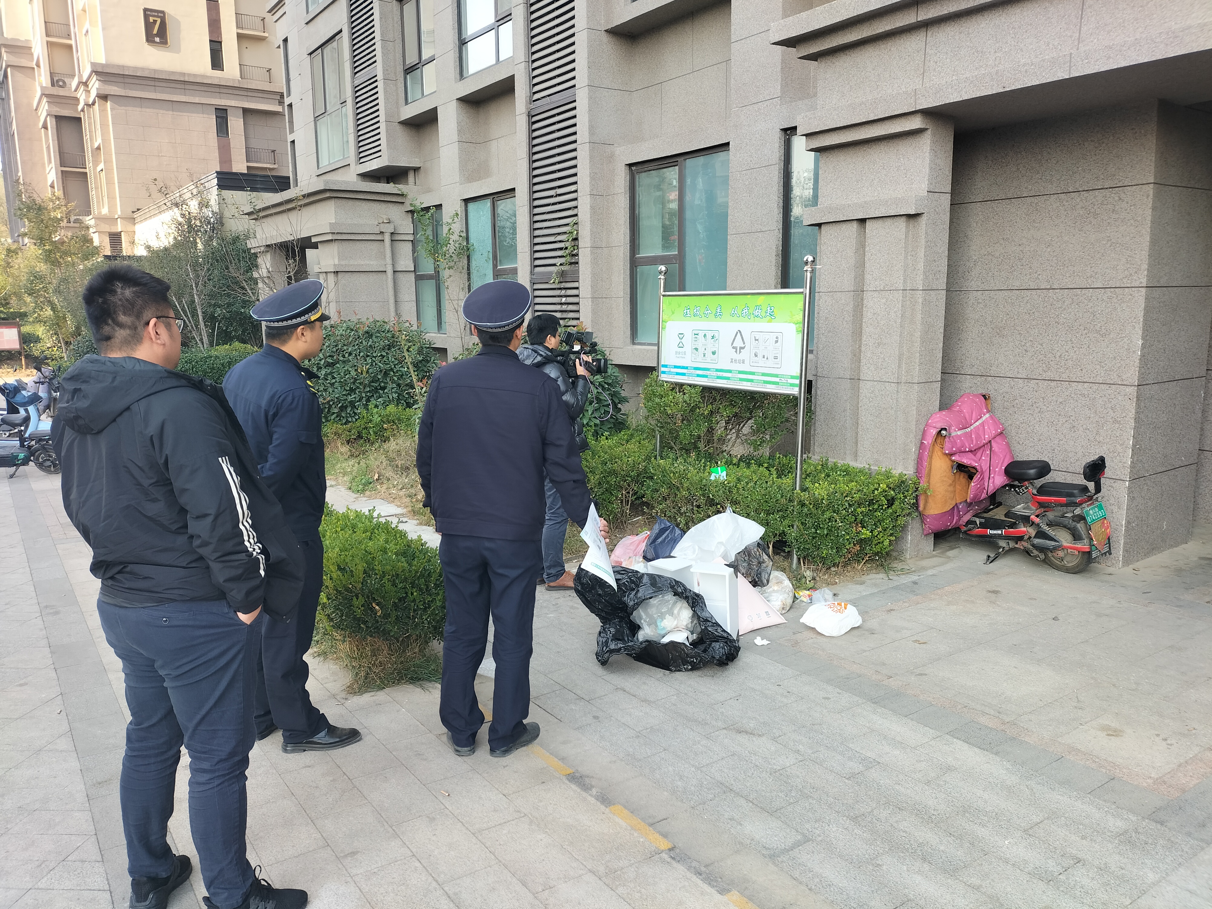 11月15日,中韓街道綜合行政執(zhí)法中隊(duì)聯(lián)合中韓街道垃圾分類主管部門開展居民小區(qū)垃圾分類專項(xiàng)檢查工作,推進(jìn)各小區(qū)內(nèi)垃圾分類工作的常態(tài)長效化管理。