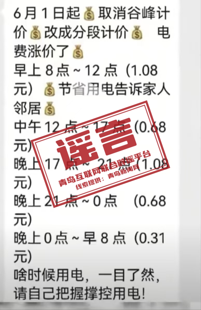 事實上,這并非孤例。此前,湖北、四川、江蘇等地也曾傳出類似謠言,宣稱“居民用電將取消谷峰計價,改為分段計價”,最終均被當?shù)毓俜奖僦{。